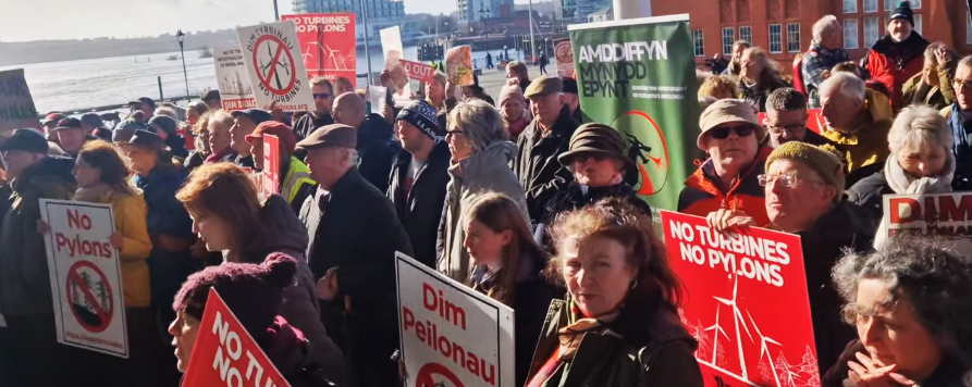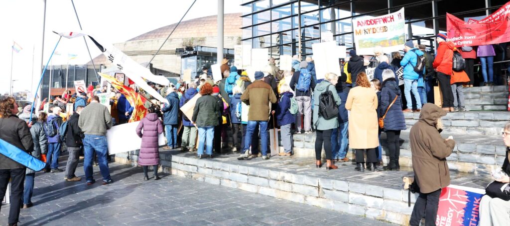 We joined hundreds at the Senedd to protest against large scale wind farms in our countryside